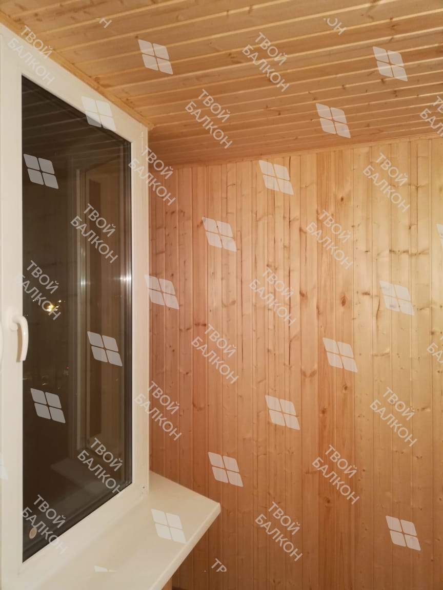 В данном объекте было выполнено решение по отделке дополнительного помещения на балконе. Отделка балкона-вагонкой из сосны.