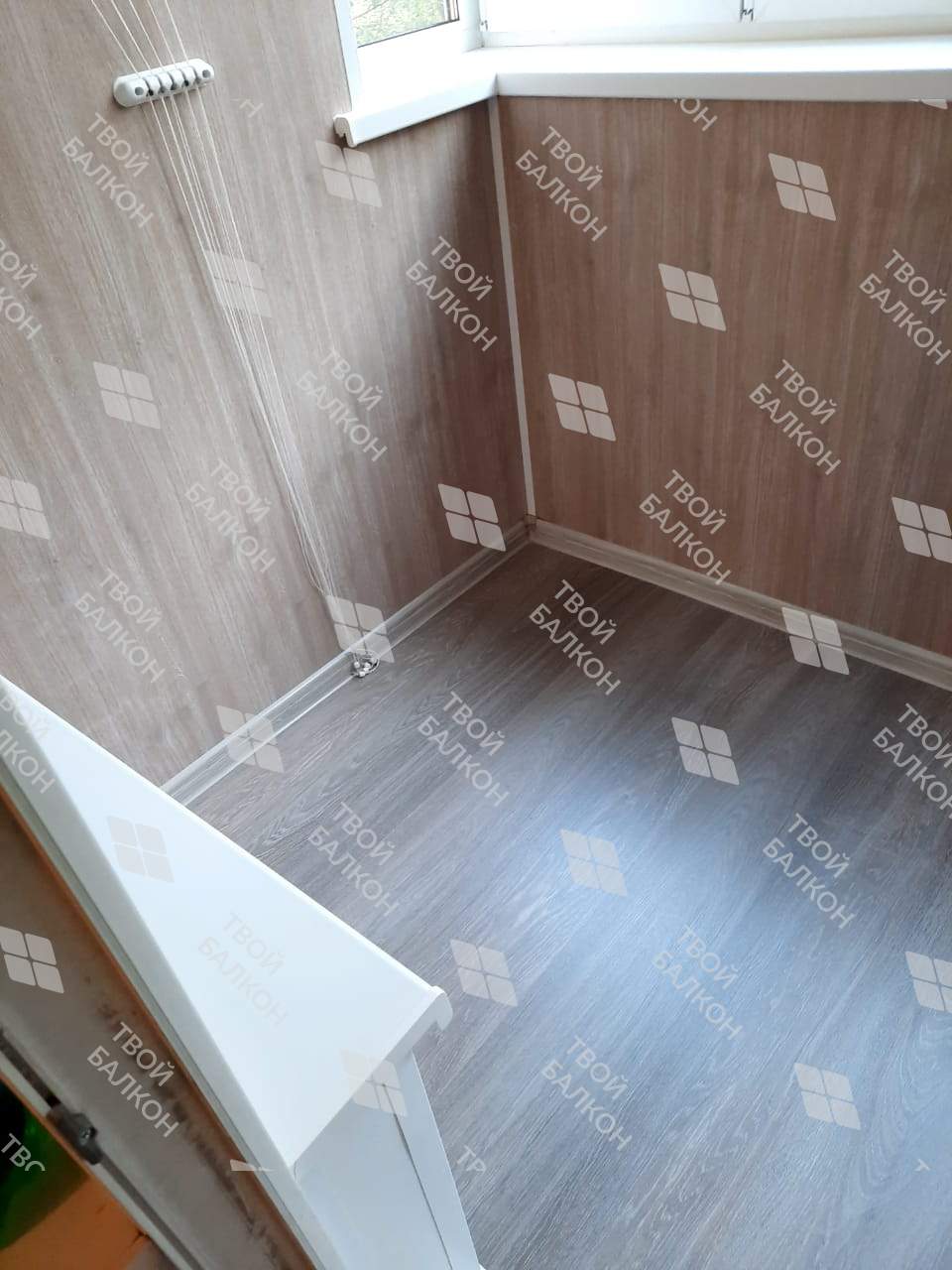 Реализованы работы по отделке балкона под ключ с утеплением, в многоквартирном доме. Сделано остекление балкона, установлен балконный блок. Все окна выполнены из профиля Rehau Grazio 70 с энергосбережением. Сделано утепление. Отделка стен и пола выполнена ламинатом, потолок натяжной. Выведено на балкон электричество. Установлена потолочная сушилка для белья. Материал предоставлялся компанией «Балкония» согласно пожеланиям заказчика.