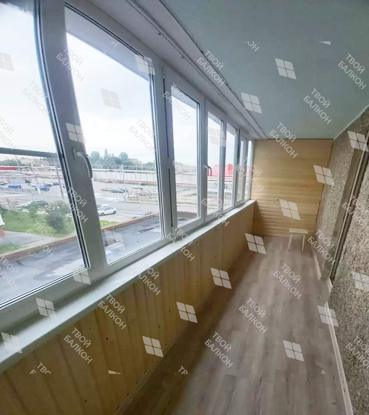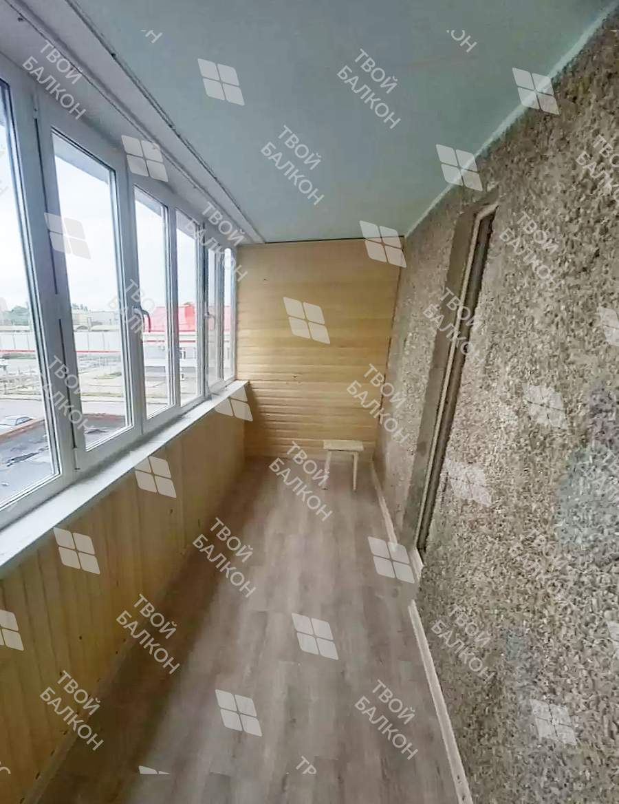 Реализована работы по отделке балкона с частичным утеплением в многоквартирном доме. Отделка стены и парапетов выполнена из вагонки, пол ламинат. Материал предоставлялся компанией согласно пожеланиям заказчика.